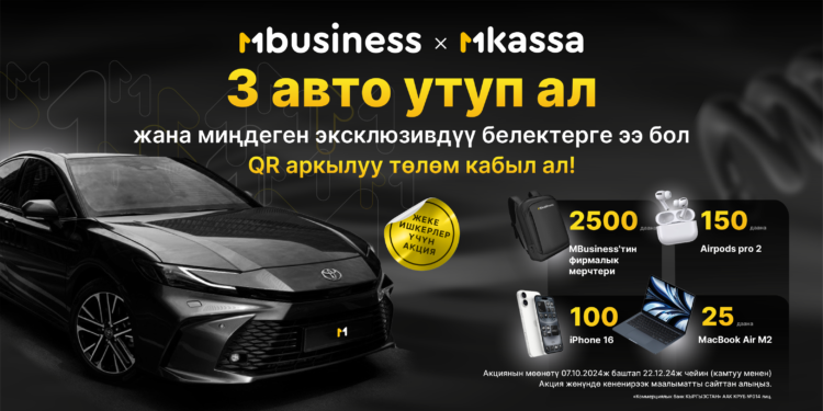 ААК «Коммерциялык банк Кыргызстан» | MBANK, MBusiness жана MKassa менен биргеликте 2024-жылдын 7-октябрынан 22-декабрына чейин созула турган ишкерлер үчүн укмуштуудай акциясын баштайт. MBusiness жана MKassa’нын QR коду аркылуу накталай эмес төлөмдөрдү кабыл алыңыз жана баалуу байгелерди утуп алуу үчүн жарышка катышыңыз!