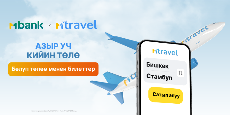 1-декабрдан тартып ААК «Коммерциялык банк Кыргызстан» | MBANK жана MTravel саякатчылар үчүн жаңы мүмкүнчүлүктөрдү ачат! Эми сиз MBANK колдонмосунда MPLUS аркылуу дүйнө жүзү боюнча учак билеттерин бөлүп төлөө менен сатып ала аласыз.