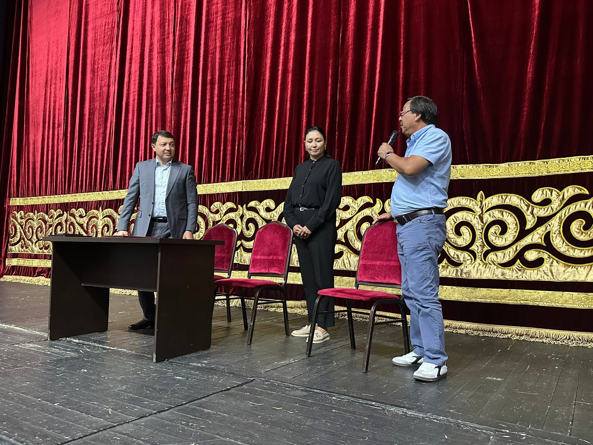 Альбина Имашеваны театрдын жамаатына маданият министри Мирбек Мамбеталиев тааныштырып, жоопкерчиликтүү ишине ийгилик каалады.