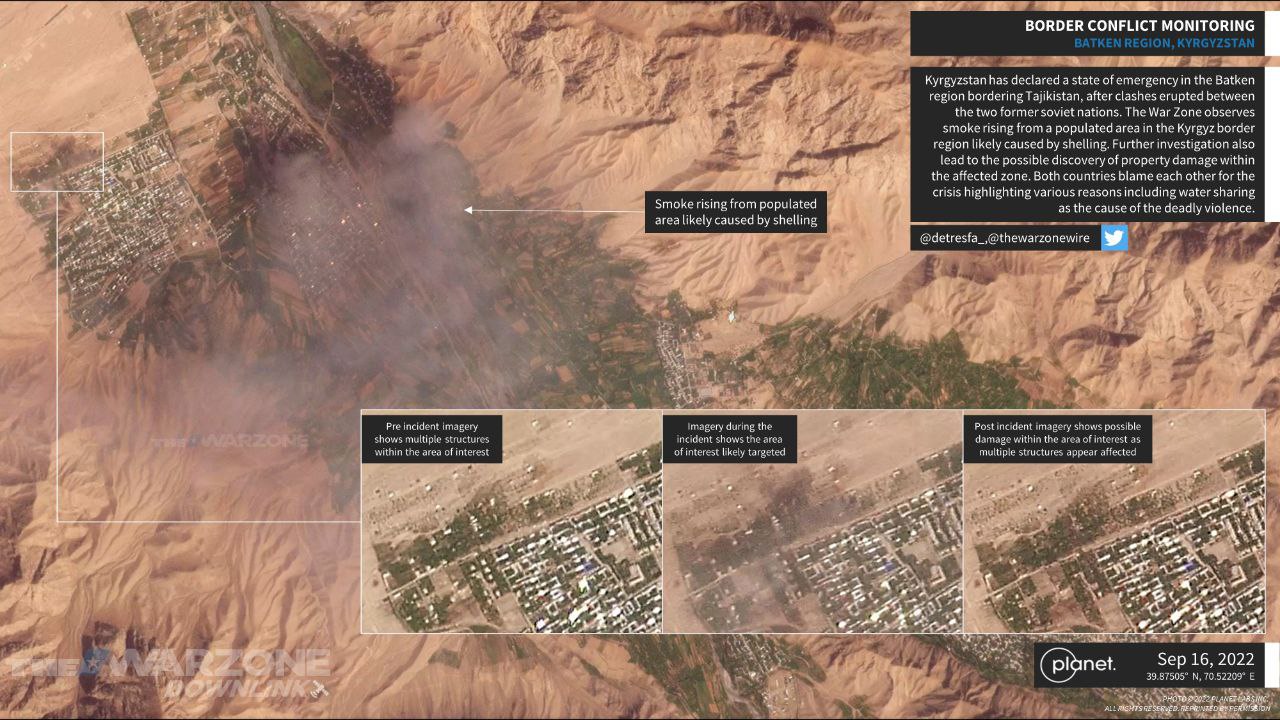 Америкалык “The War Zone” аскерий-аналитикалык басылмасы Тажикстандан аскерлер басып кирген кездеги Ак-Сай айылынын спутниктик картасын жарыялады. Сүрөт 16-сентябрда – Тажикстандын Кыргызстандын аймагына катуу чабуул жасаган күнү тартылган.