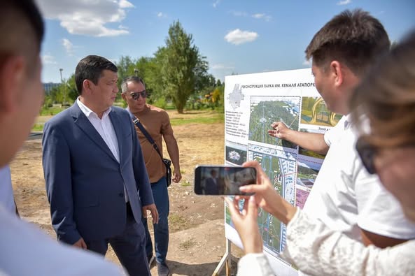 Бишкек шаарынын мэри Айбек Жунушалиев Ататүрк атындагы паркты реконструкциялоо долбоору менен таанышып, шаардыктар менен жолукту.