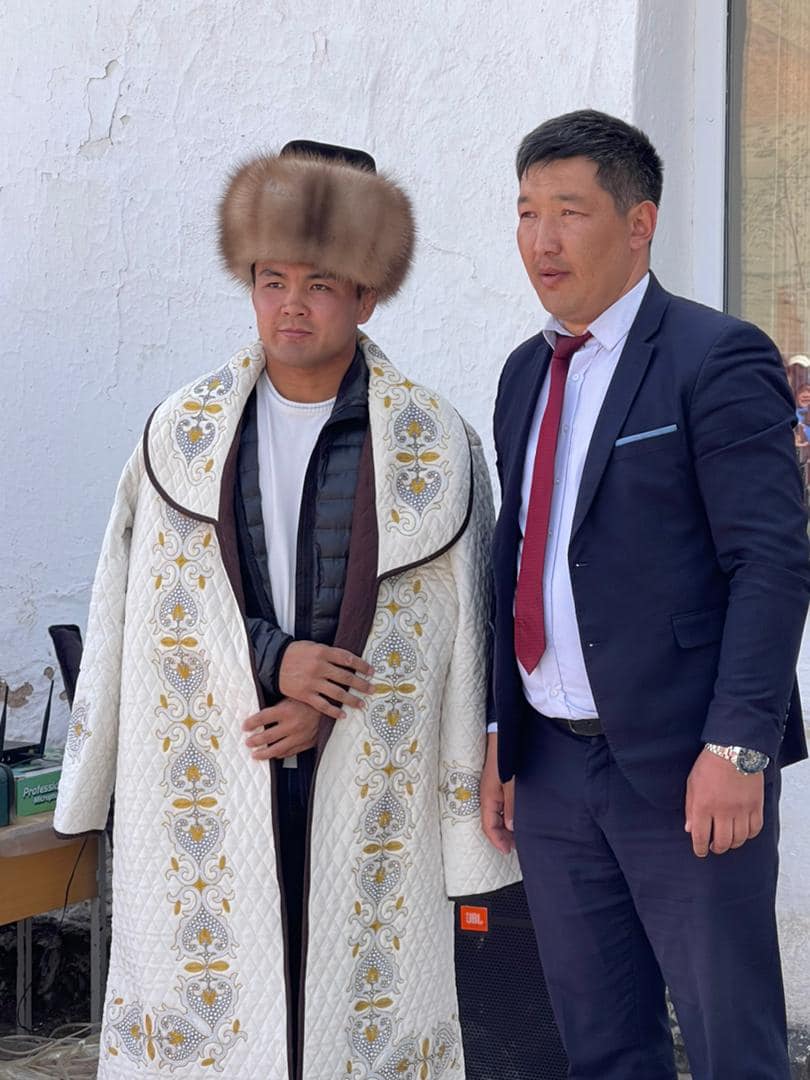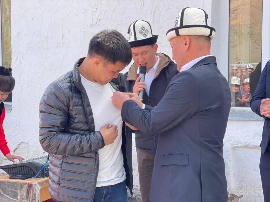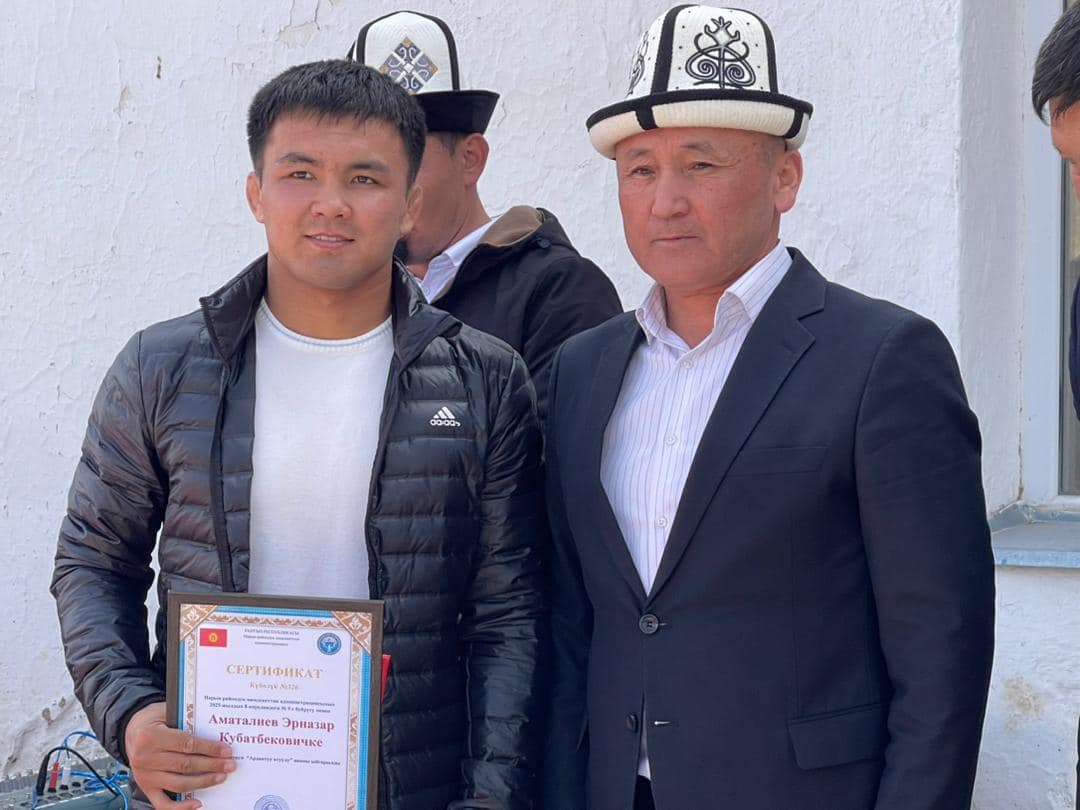 Район акими куттуктоо сөзүнөн кийин Акматалиев Эрназар Кубатбековичке Нарын районунун “Ардактуу атуулу” наамын, ал эми машыктыруучусу Сыдыкбеков Канатбек Акматалиевичке Нарын райондук мамлекеттик администрациясынын “Ардак грамотасы” ыйгарды.