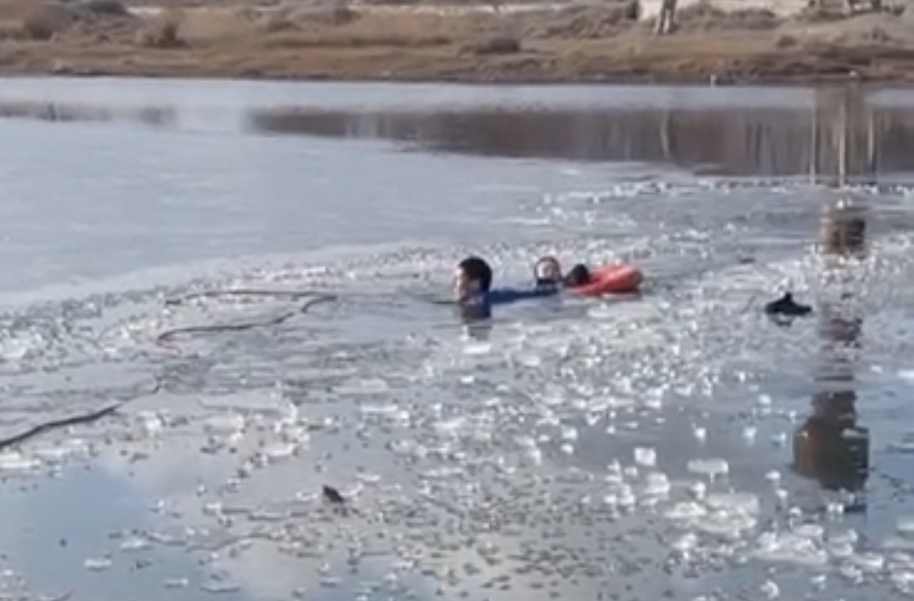 “Милиция кызматкери үстүндөгү формасын чече коюп, муз болгон көлмөгө кирип, балдарды куткарууга аракет кылды. Куткаруучу каражаттын жардамы менен балдарга сүзүп жетип, аларды жээкке чыгарууга үлгүрдү. Жээкте турган кесиптештери балдарды өздөрүнүн бушлаттарына орошуп, кызматтык унаага олтургузуп, жардам көрсөтүштү. Куткарылган балдар 10 жана 12 жаштагы бир туугандар болуп чыгышты. Алар медицина кызматкерлерине өткөрүп берилди. Балдардын ден соолугуна коркунуч жок”, — деп айтылат маалыматта.