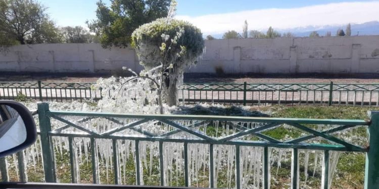 Кечээ, 4-майда Балыкчыда аба ырайы кескин суук болуп кеткенине байланыштуу дарактар тоңуп калган. Ага чейин алардын сугарылганы маалымдалууда.