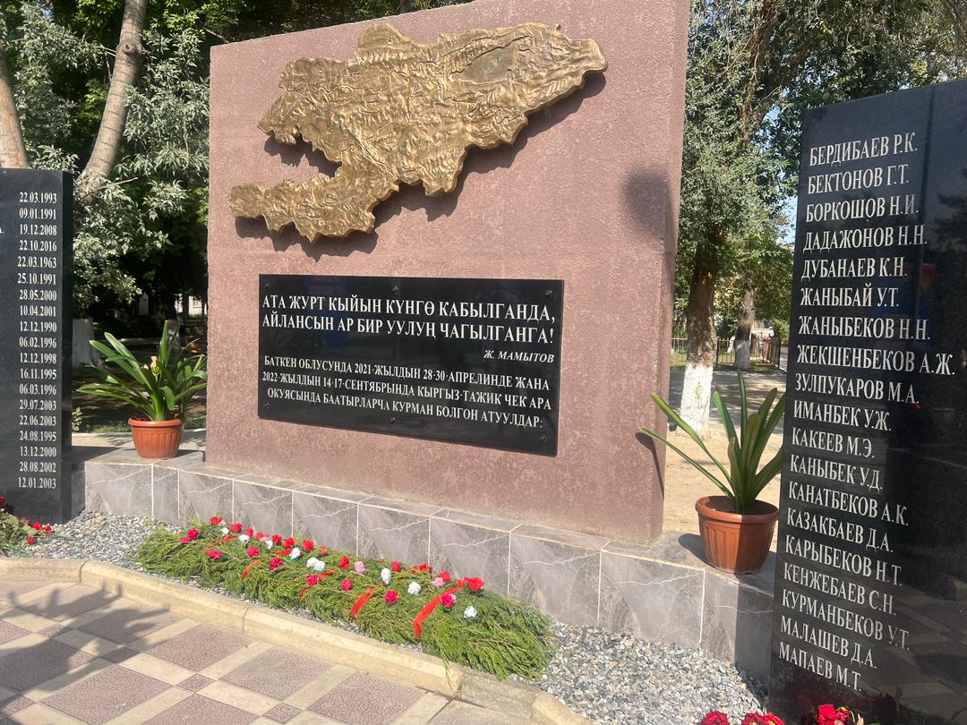 Иш-чаранын алкагында “Жеңиш” паркында чек ара курмандыктарынын элесин түбөлүккө калтыруу максатында тургузулган эстелик мемориалынын ачылышы болду. Ага УКМКнын төрагасы Камчыбек Ташиев, президенттин Баткен облусундагыөкүлү Абдикарим Алимбаев, Чек ара кызматынын башчысы Уларбек Шаршеев, дин аалымы Абдышүкүр Нарматов, чек ара окуяларында каза болгон жарандардын жакындары, облустун активи катышты.