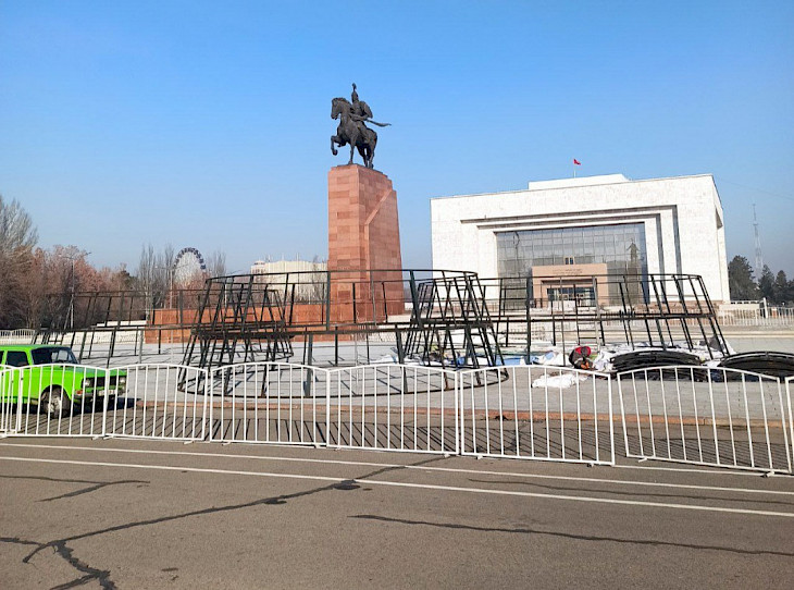 Бүгүн, 28-ноябрда борбор калаанын “Ала-Тоо” аянтында жаңы жылдык балаты орнотула башталды.
