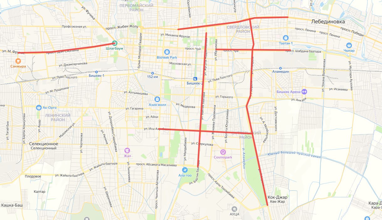 Чүй проспекти — Лермонтовдон Ибраимовго чейин;