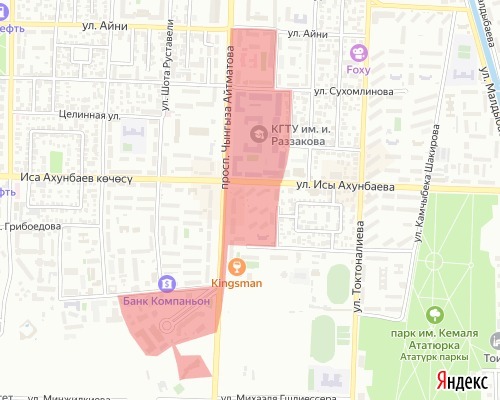 — Айтматов проспектиси – Айни көчөсү – Водопроводная көчөсү – Сухомлинов көчөсү – Водопроводная көчөсү – Целинная көчөсү – Политехническая көчөсү – Таш-Көмүр көчөсү