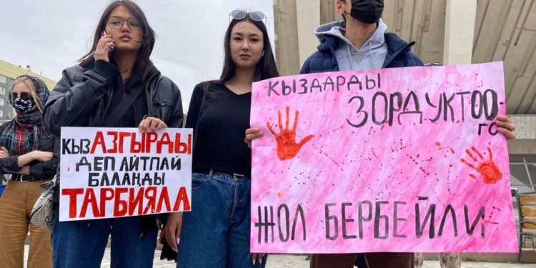 8-мартта Бишкекте аялдардын укугун коргоо үчүн тынчтык жөө жүрүш өттү. Спорт сарайынын жанына 200дөй адам чогулду.