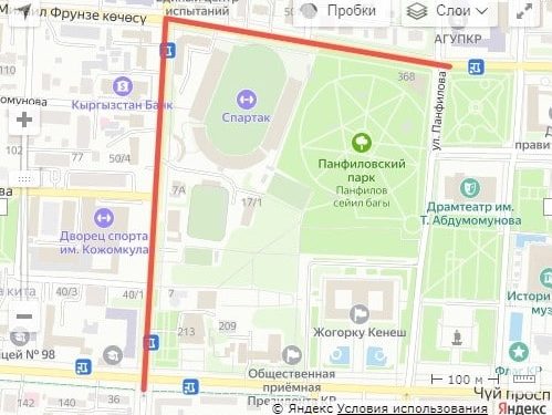 Саат 14:00дөн тартып, 23:00гө чейин Тоголок Молдо көчөсү түндүктү карай — Чүй проспектисинен тартып, Фрунзе көчөсүнө чейинки бөлүгү, Фрунзе көчөсү Тоголок Молдо көчөсүнөн тартып, Панфилов көчөсүнө чейинки бөлүгү жабылат.