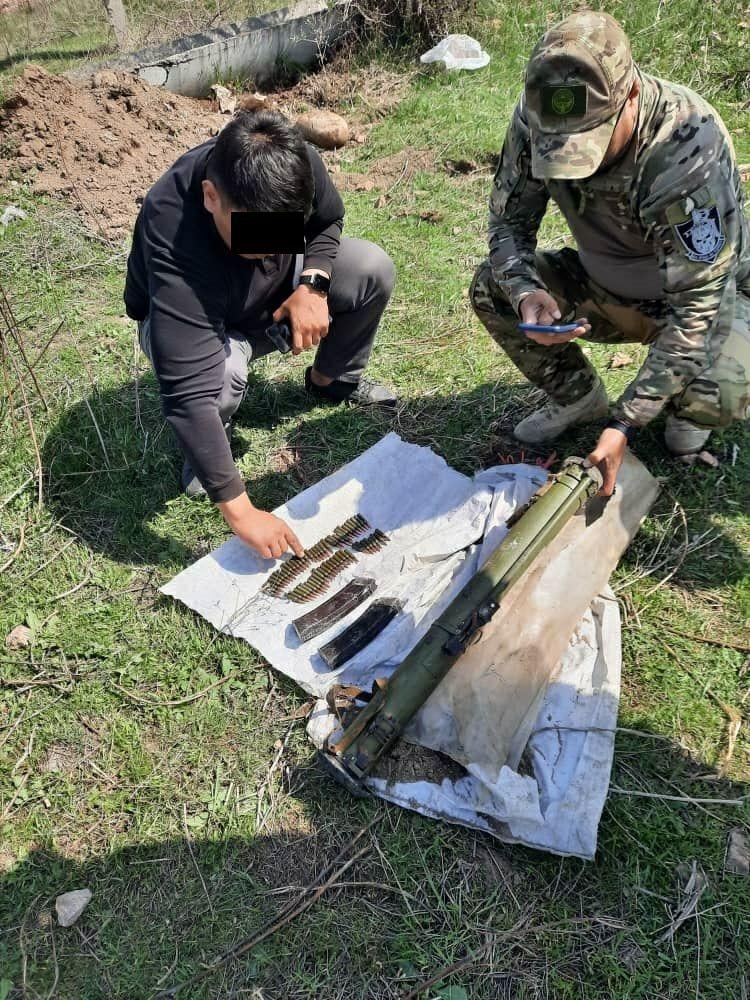 «Бекитилген жерден АК-47 Калашников автоматынын 2 магазини, 5.45- 59 даана ок-дарылар жана РПГ-26 Аглень гранатомету табылып алынды. Булар мурда Кыргызстандын күч бөлүмдөрүнүн биринин балансында болушу мүмкүн.