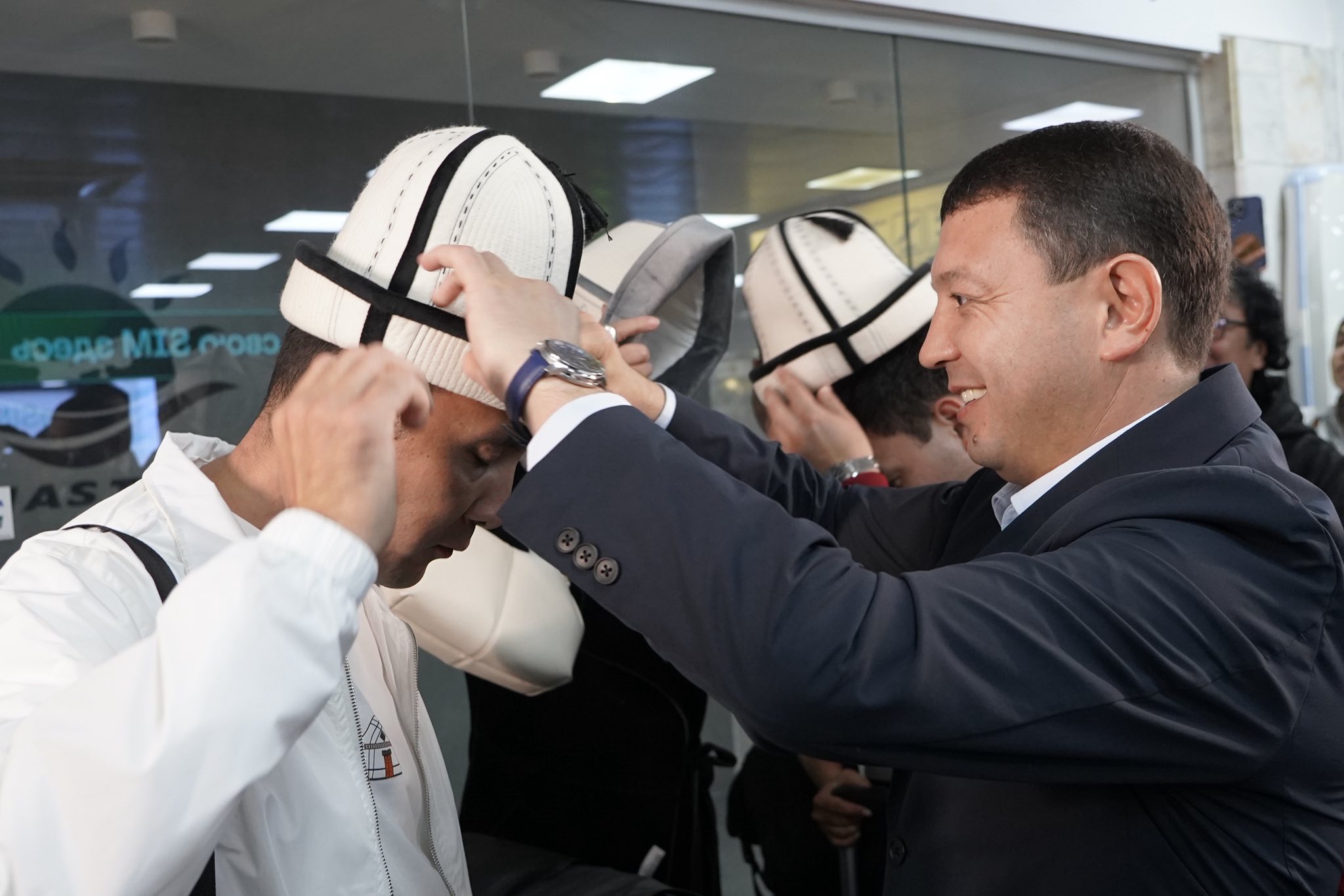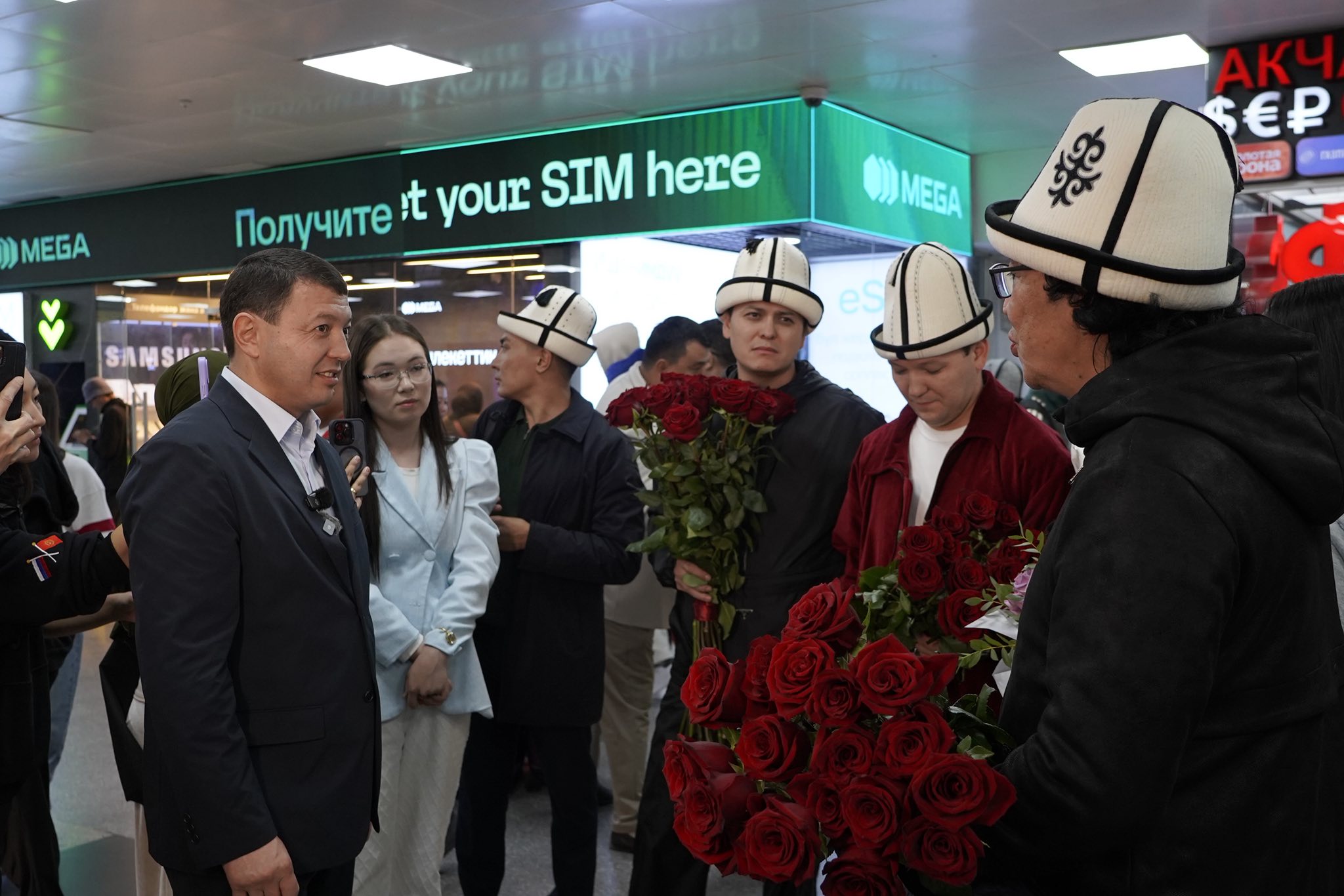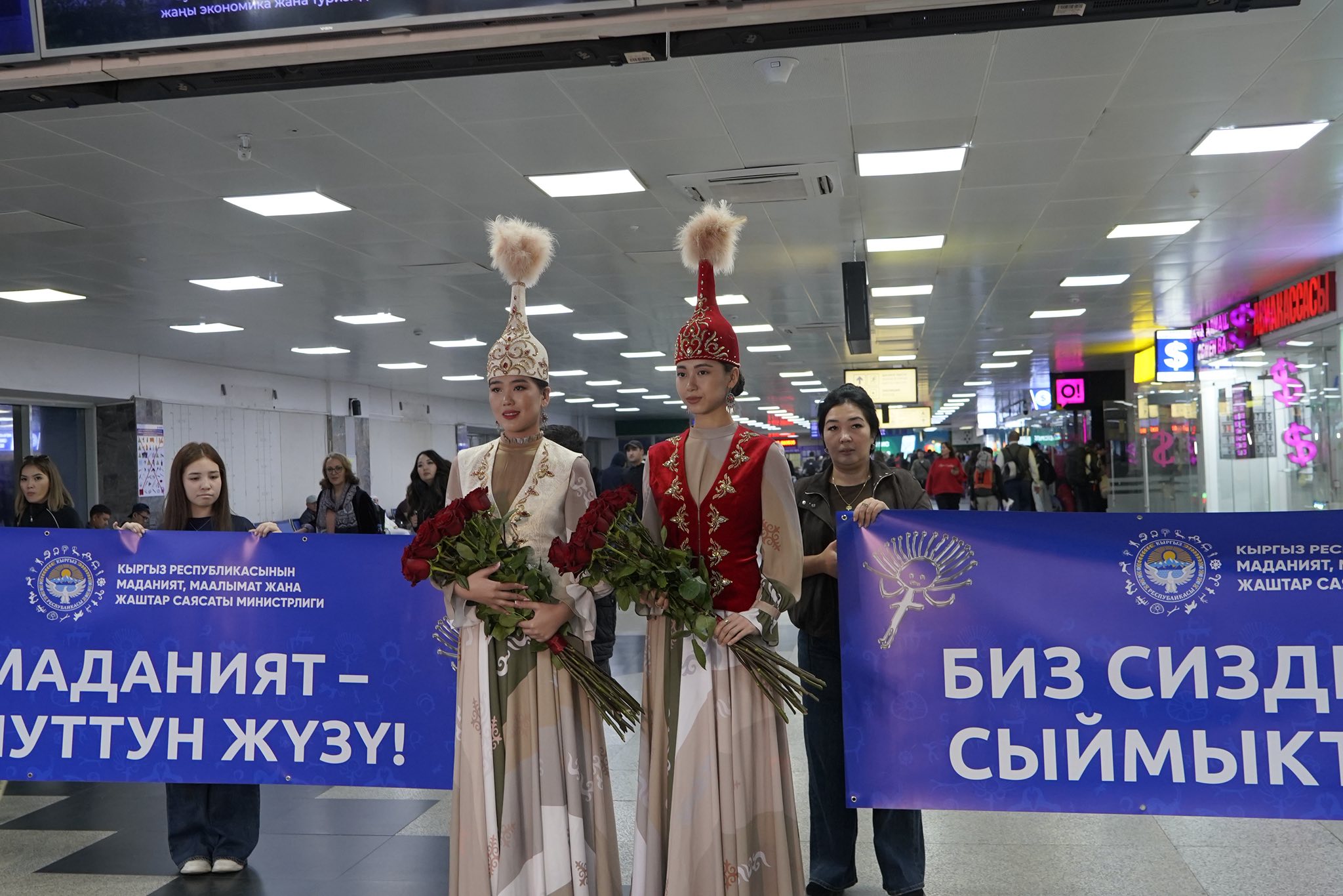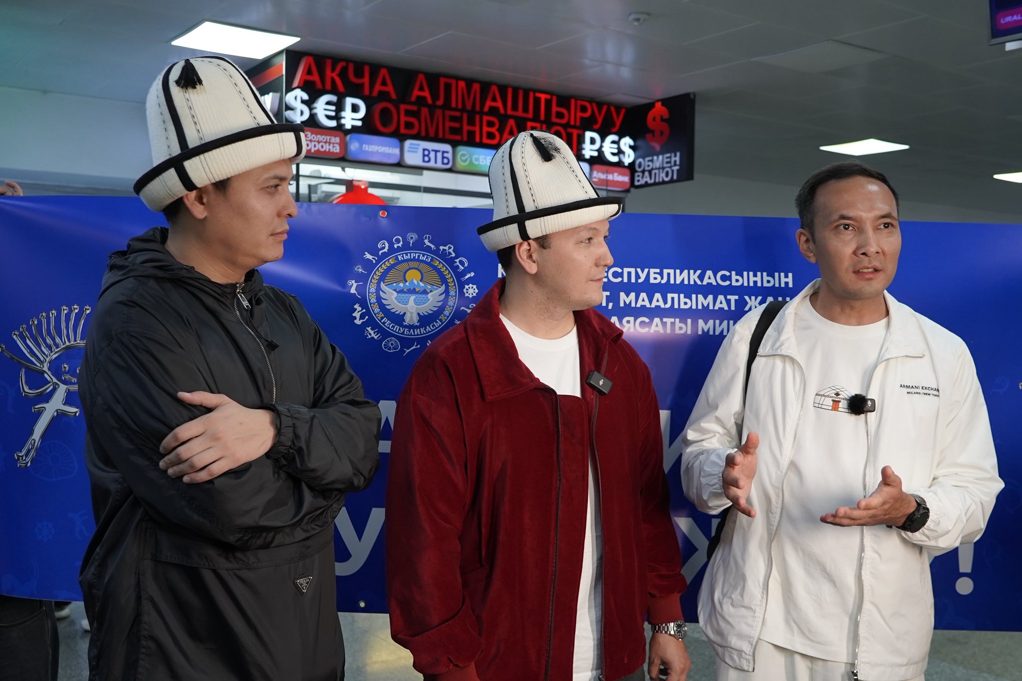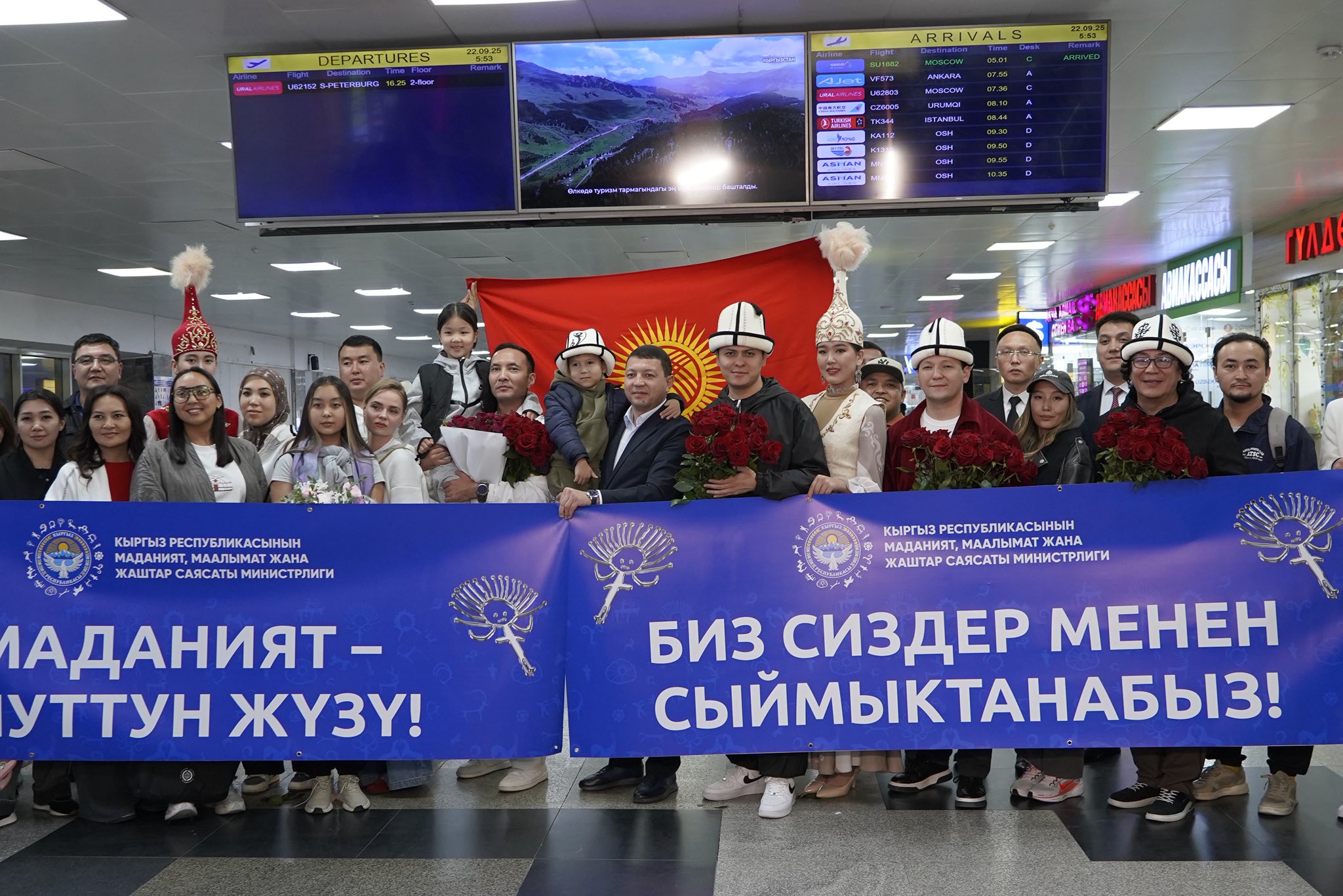 Мааданият, маалымат жана жаштар саясаты министри Мирбек Мамбеталиев Москва шаарында өткөн «Интервидение-2025» эл аралык музыкалык сынакта 2-орунду жеңип алган «Nomad» триосун Манас эл аралык аэропортунан тосуп алды.