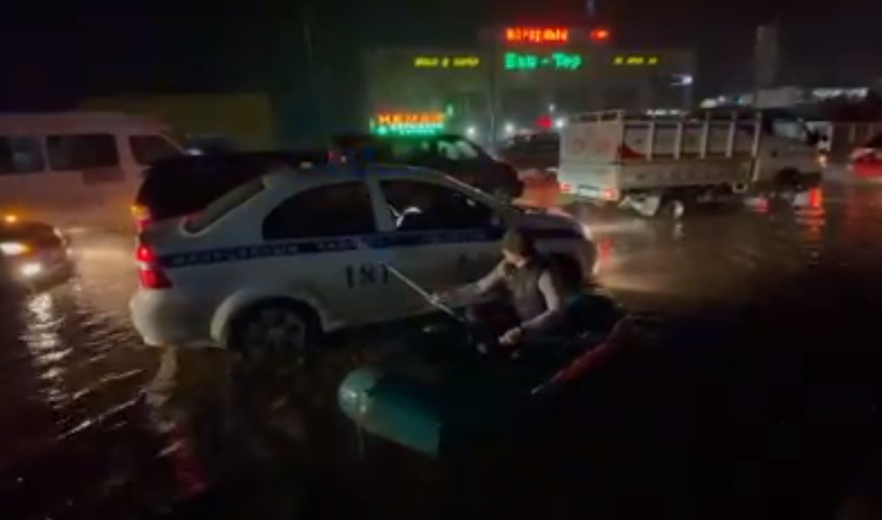 Маалыматка ылайык, аталган активист токтобой жааган жамгырда суу толуп, Бишкектин Барпы Алыкулов менен Фрунзе көчөлөрүнүн кесилишинде кайык менен сүзүп жүргөн.