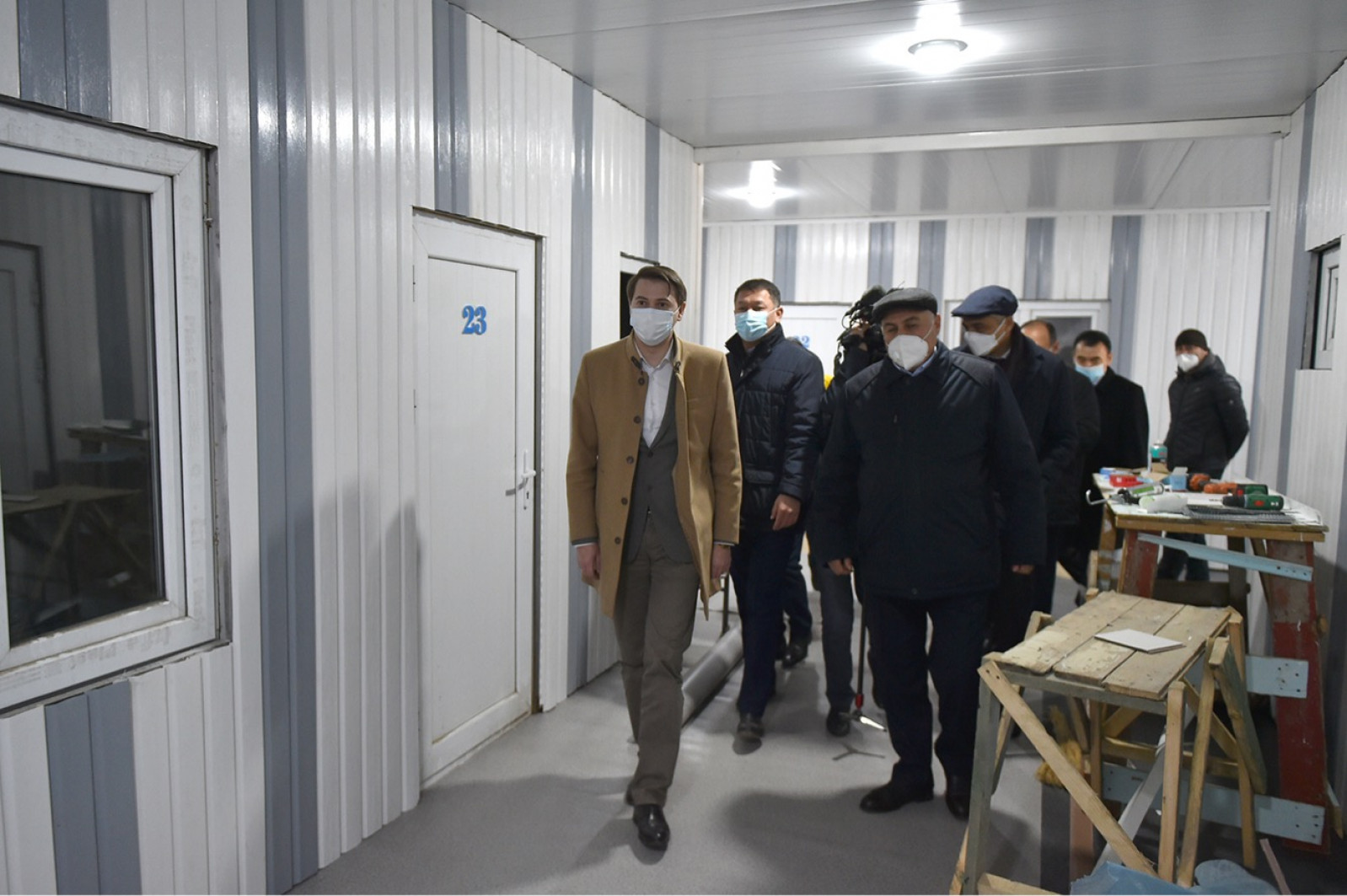 Гуманитардык көмөк берүү алкагында курулуп жаткан медициналык мекеменин имараты жыйынтыкталуу алдында турат. Эки корпустан турган, 214 орунга ылайыкталган оорукана 5-7 күн ичинде пайдаланылууга берилмекчи. Курулуп жаткан имаратты көрүп чыккан соң, Новиков курулуш иштерин ыкчамдатууну белгиледи.