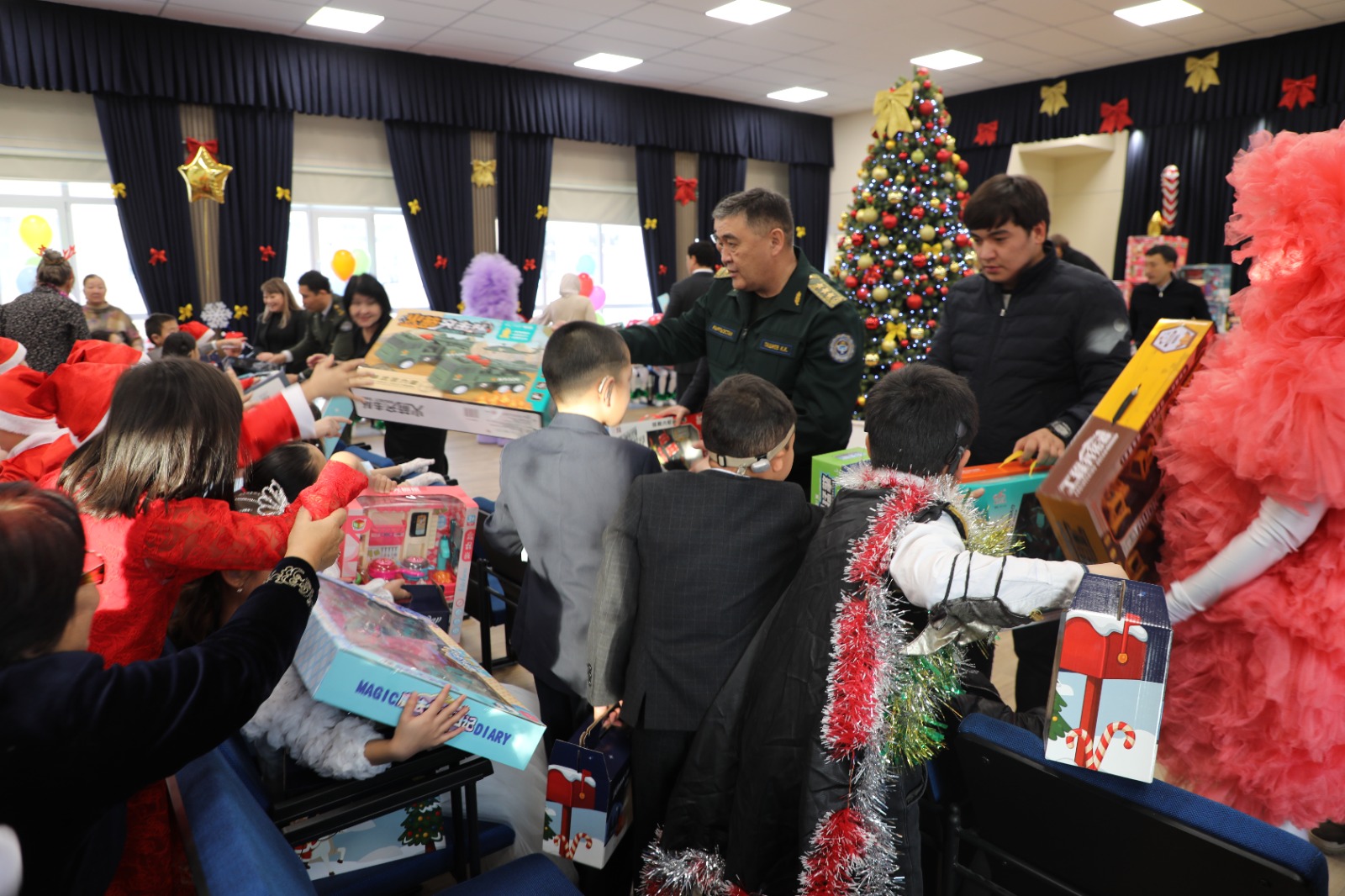 Иш-чаранын жүрүшүндө УКМК жетекчилигинин жана кызматкерлеринин атынан жаңы жылдык белектер жана бир миллион сом каржылык колдоо көрсөтүлдү. Мектеп-интернаттын окуучулары өз кезегинде жаңы жылдык майрамдык программа тартуулашты.