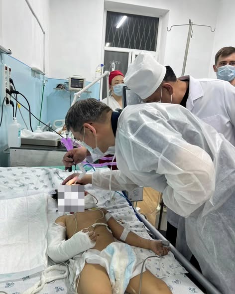 Бала өтө оор абалда ооруканага жаткырылып, жандандыруу бөлүмүндө жатат, жасалма дем алдыруу аппаратына туташтырылган. Дарыгерлердин маалыматына ылайык, бейтапта баш мээсинин жабыркашы, астыңкы жаактын сыныгы, оң колдун ийин сөөгүнүн жабык жылышып кеткен сыныгы, өпкөнүн жана ички органдардын жабыркашы, ошондой эле ооз көңдөйүнүн жабыркаган жаракаттары аныкталган. Профилдик адистердин, анын ичинде нейрохирургдардын, травматологдордун, жаак-бет жана көкүрөк хирургдарынын катышуусунда консилиум өткөрүлдү.