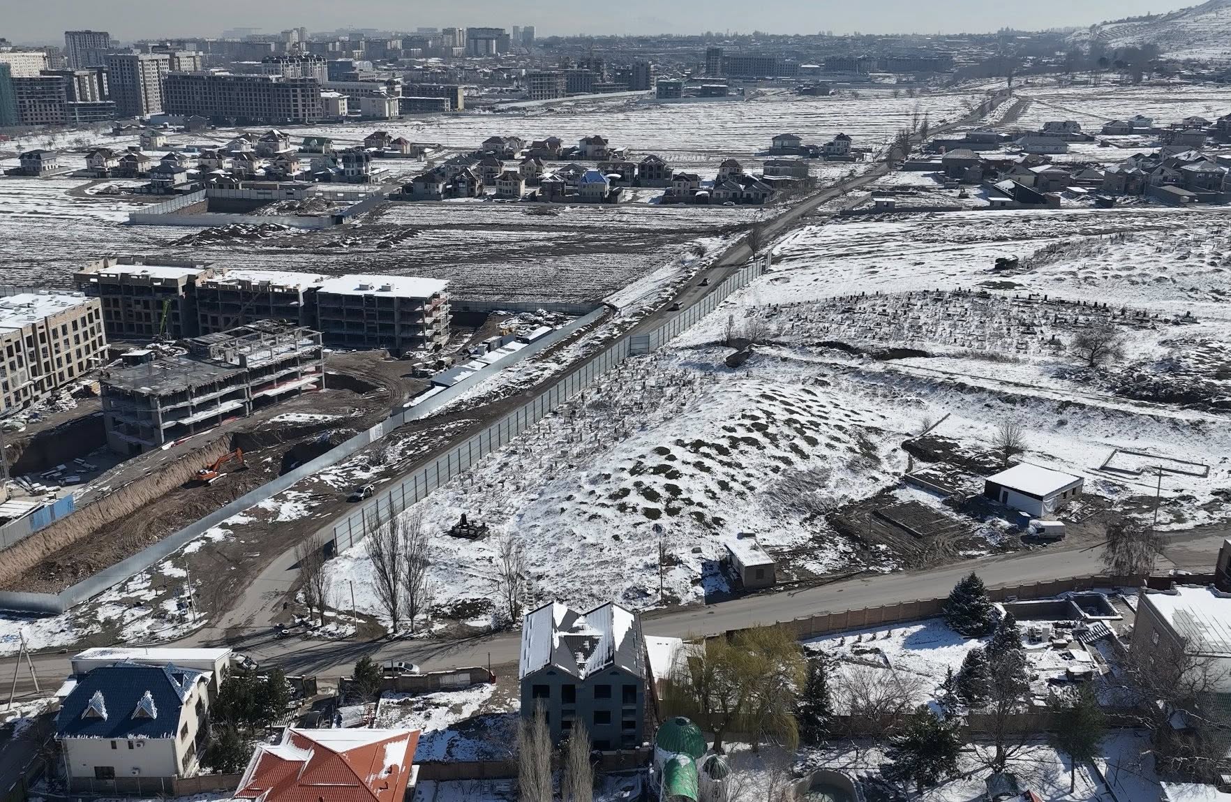 Жүргүзүлгөн топографиялык өлчөөлөрдүн жыйынтыгына ылайык, курулуш объектиси менен көрүстөндүн ортосундагы аралык орточо 60-70 метрди түзөт. Ушуга байланыштуу социалдык тармактарда айтылып жаткан “Курулуш көрүстөндөн 30 метр аралыкта жайгашкан” деген маалымат чындыкка дал келбей турганын белгилейбиз. Мындан тышкары, бүгүнкү күндө аталган көрүстөндүн жабык болуп кайрадан пайдаланылып жатканы тууралуу маалыматтар коомчулукта кошумча суроолорду жаратууда. Белгилей кетсек, көрүстөндүн статусун аныктоо, аны жабуу же пайдаланууга берүү маселелери жергиликтүү өз алдынча башкаруу органдарынын компетенциясына кирет. Ал эми Бишкек шаардык шаар куруу жана архитектура башкармалыгы тарабынан курулушка уруксат берүүдө ошол учурда күчүндө болгон расмий документтердин негизинде жана мыйзам талаптарына ылайык гана иш жүргүзүлгөн.