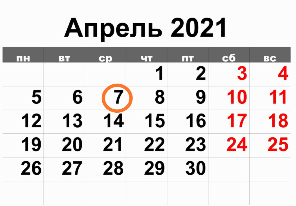 Апрель революциясы күнү шаршембиге туш келгендиктен, ал жылдырылбайт, андыктан 7-апрель эс алуу күнү болот. Апрелде башка майрамдык күндөр жок. Ушуну менен беш күн иштегендер бир айда тогуз жолу эс алат.