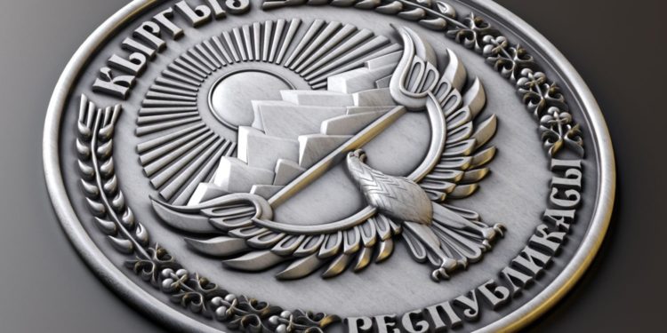 Чындыгында эле, ак түс менен кырбууланган көк алкактын ортосунда Ысык-Көлүбүз чалкып турса, ак калпагыбыздын түспөлүн берген ак чокулуу Ала-Тоодон күн нурлары чачырап тийип турат. Алдында Манас атабыздын Ак шумкары канатын жайып, эл-жерибизди коргоп тургандай элес калтырат. Бул белгилерди тегеректей, бир чети өлкөбүздүн булуң-бурчундагы молчулуктун символу катары пахта менен буудайдын сабы тартылганы өзүнчө бир керемет. Кыргызстандын негизги өзгөчөлүктөрү ыгы менен камтылган бул композицияны «Кыргыз Республикасы» деген жазуунун курчап турушу дагы ынтымакты, биримдикти чагылдырып турат.