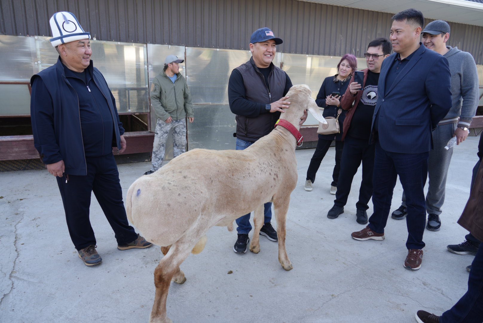 Министрлер кабинетинин төрагасынын орун басары — Суу ресурстары, айыл чарба жана кайра иштетүү өнөр жайы министри Эрлист Акунбеков Чүй облусунун Сокулук районундагы Кызыл-Туу айылында жайгашкан Рысбек Мамбеткуловдун асыл тукум кой чарбасына барды.