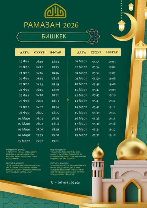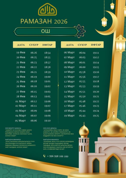 Орозо эртең, 19-февралда башталып, ушул күнү ооз бекилет. Бул боюнча Өзбекстандын Самарканд шаарында ТМУга мүчө-өлкөлөрдүн муфтияттарынын алдындагы фатва кеңеши чечим кабыл алды.