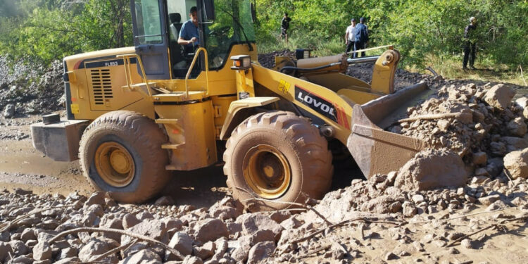 Кечээ, 29-июнь күнү Ноокат районунун Кулатов айыл аймагынын Абшыр-Ата айылында сел сай жана сел агындыларын тазалоого ӨКМден экскаватор техникасы жана райондук Жарандык коргонуу кызматтарынын техникаларынын жардамы менен жеринде селдин кесепеттерин жоюу жана калыбына келтирүү иштери башталып, бүгүн, 30-июнь күнү уланууда.