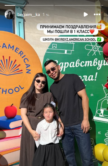 Алып баруучу Мирзат Муканов менен Айзуура Иманалиеванын кызы да катарды толуктады. «Бүгүн сиздердин сары кыз 1-класска барды. Билим жолуңар байсалдуу болсун, биздин кичинекейлер! Атасы экөөбүз кайрадан толкундадык», — деп жазды ал.