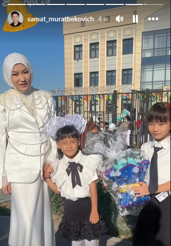 “Жебе” тобунун мурдагы солисти, ырчы Самат Муратбековдун кызы да мектепке барды.