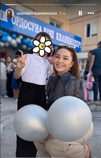 Ырчы, актриса Асеманын уулу да мектепке барды.
