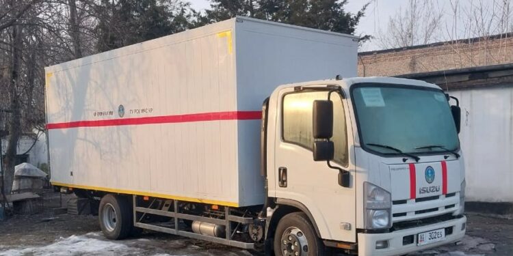 Бүгүн, 11-февралда Өзгөчө кырдаалдар министрлигине караштуу Республикалык адистештирилген комбинаты мамлекеттик мекемесине радиоактивдүү заттарды ташууга багытталган ISUZU NQR 90 L үлгүсүндөгү адистештирилген атайын унаасы тапшырылды.