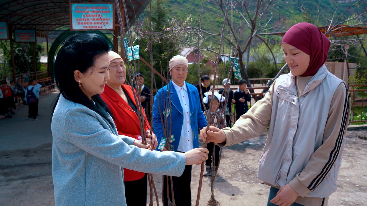 «Кээ бир адамдар бар, какайган терекке окшоп түптүз эле тура берет же көлөкөсүн бербейт же мөмөсүн бербейт. Көлөкөбүз тийип, мөмө берип, шамал болгондо ийилип, сынып калбай, коомго дагы, табиятка да керектүү мөмөлүү дарак бололу. Алдыда ушул көчөттүн мөмөсүн чогуу жейли»,- деди Орозайым Нарматова.
