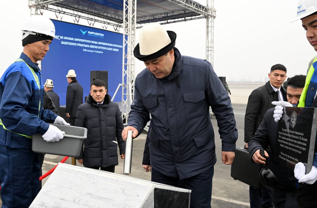 Президент Садыр Жапаров бүгүн, 14-февралда “Ош” эл аралык аэропортунун жаңы аэробекет комплексинин курулушуна мезгил кутусун салды. Бул тууралуу президенттин администрациясынан билдиришти.