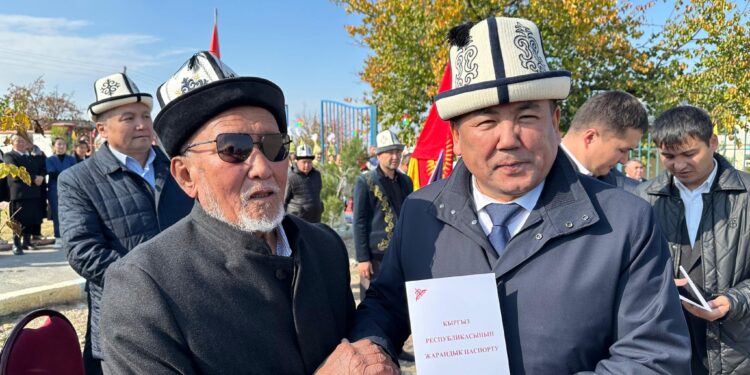 Жолугушууда Садыр Жапаровдун жарлыгына ылайык, азырынча айылдын 246 тургунуна кыргыз жарандыгын тастыктаган паспортторду тапшырды.