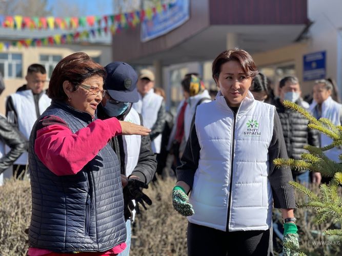 Ошондой эле интернаттын директору Эркингүл Сатывалдиеванын айтымында, бүгүн аталган билим берүү мекемесинин аймагына 150 түп көчөт отургузуу ишембилиги пландалган. Ага Айгүл Жапарова да катышып, көчөт отургузду.