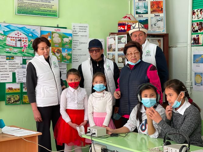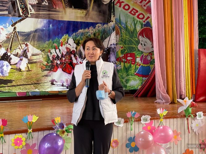 «Бизде 300дөн ашуун бала бар. Бүгүн алар биринчи айым менен таанышып, аны менен ишембиликке чыгышты. Айгүл Жапарова бизге азык-түлүк жана балатынын көчөттөрүн ала келиптир», — деди мектеп интернатынын директору.