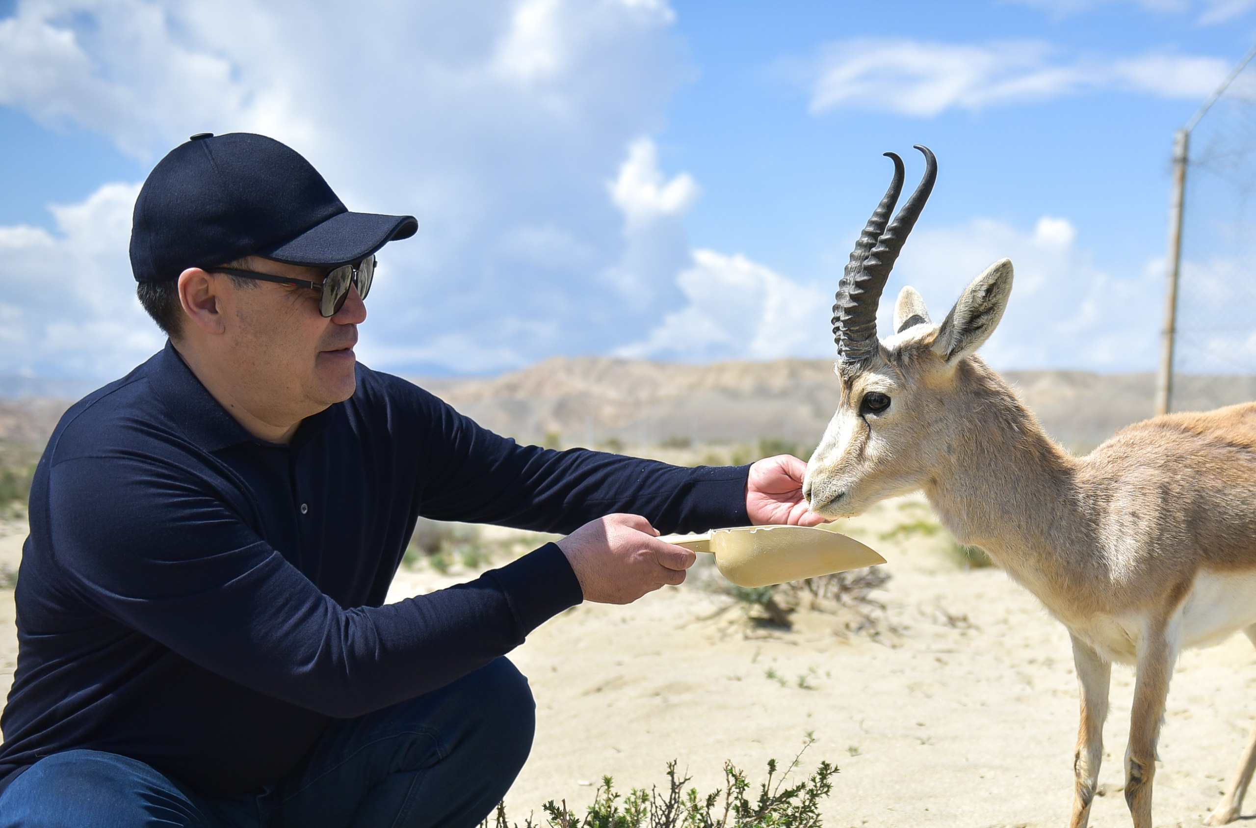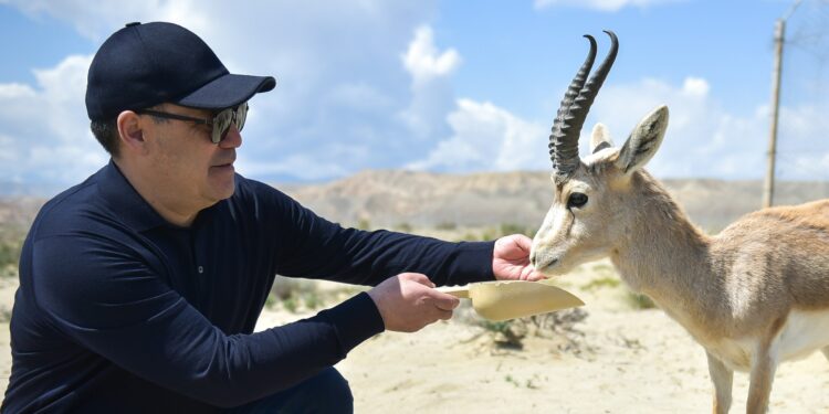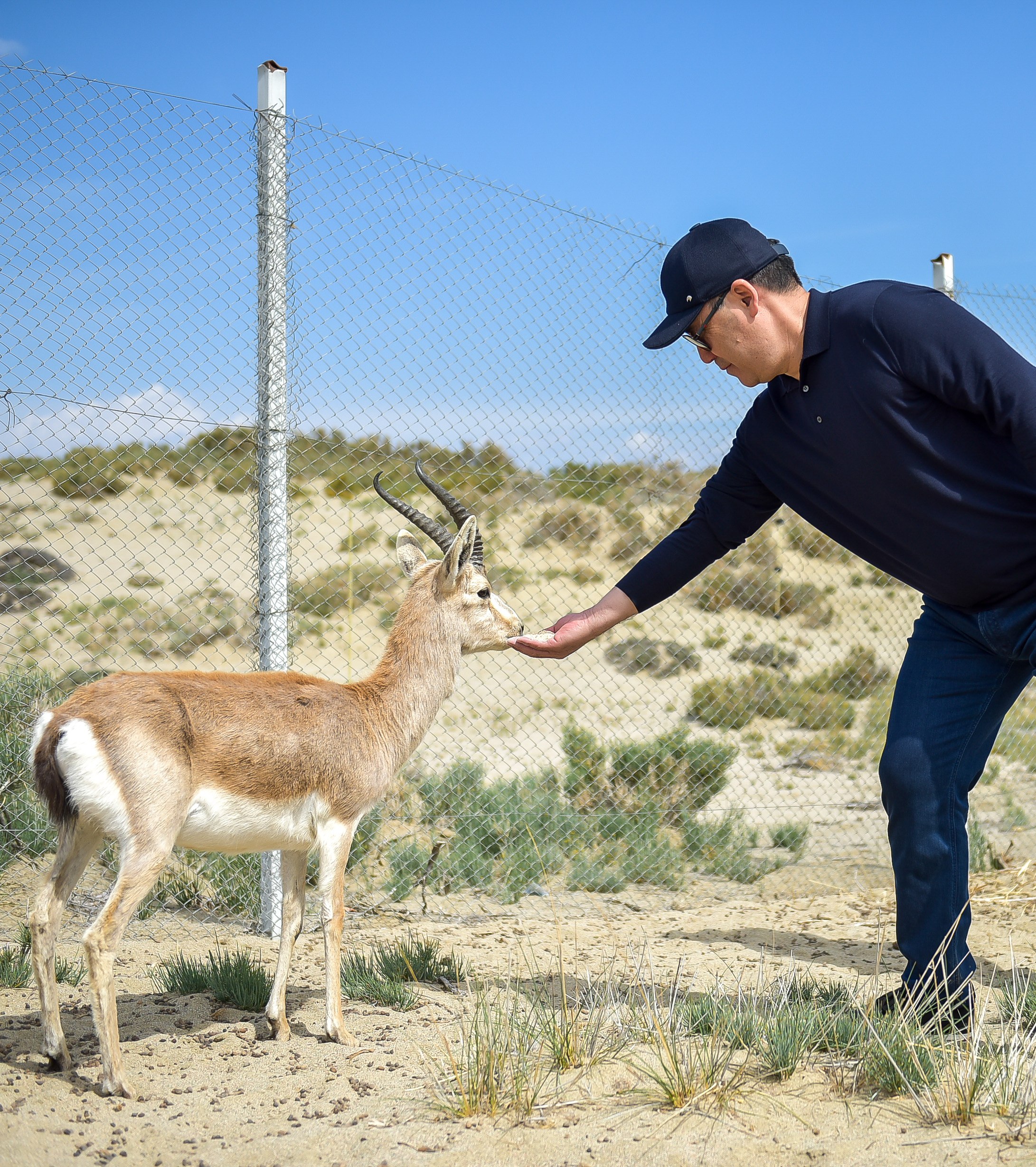 Президент Садыр Жапаров бүгүн, 2-майда Ысык-Көл облусуна болгон жумуш сапарынын алкагында Ысык-Көл көлүнүн аймагындагы жейрендин популяциясын жана таралган аймагын калыбына келтирүү долбоору менен таанышты.