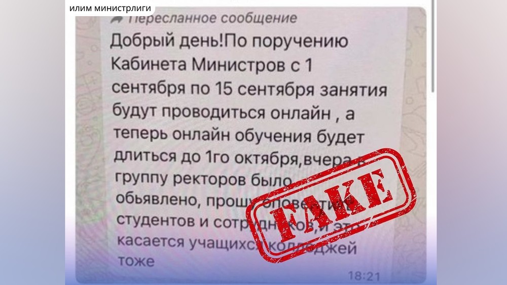 Студенттердин онлайн окуу процесси 1-октябрга чейин узартылганы жөнүндө маалымат чындыкка дал келбейт. Бул тууралуу СЕРЕП МЕДИА маалымат агенттигине Билим берүү министрлигинен билдиришти.
