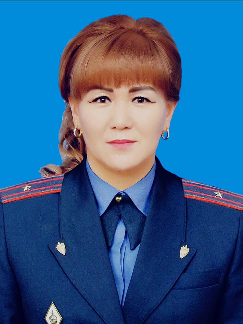 Мен атамдын жана бир туугандарымдын жолун жолдоп, милиция кызматын тандагам. Өзүмдүн кичинекей кезимден эңсеген кесибиме жетип, кызмат өтөп келем. Аял кишиге милиция кызматында өтөгөн эч кандай кыйынчылыктарды жаратпайт. Анткени ар бир инсан өзү сүйгөн кесибинде иштеп жатканда үй-бүлөдө жана бир туугандар арасында колдоо болуп турса, кыйынчылык жаралбайт. Атам, бир туугандарым дагы милицияда иштеп ардактуу эс алууга чыккандыктан, мени алар ар тараптан колдоп турат. Үй-бүлөдө үч баланын апасымын.
