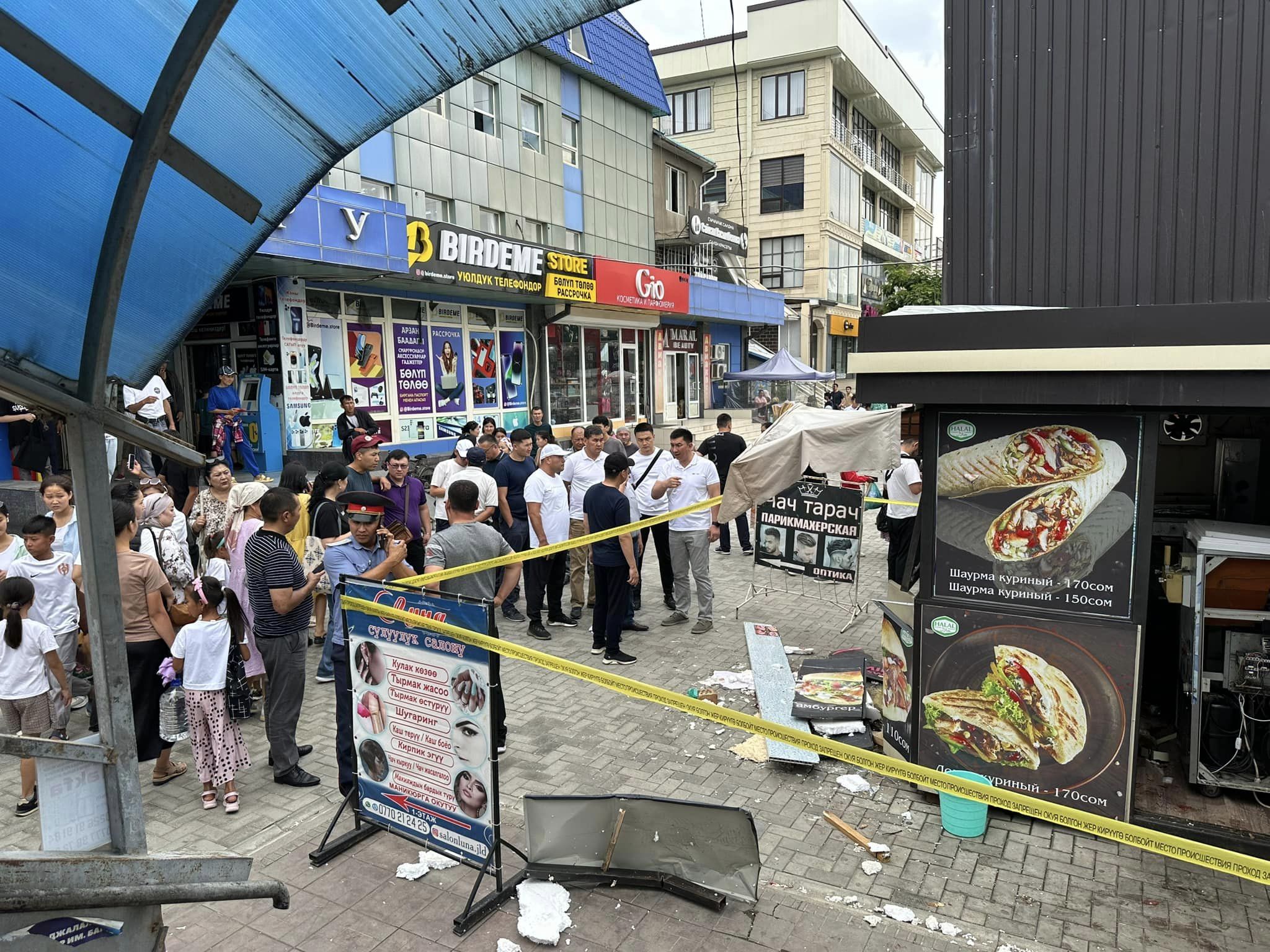 Бүгүн, 13-июлда президенттин Жалал-Абад облусундагы ыйгарым укуктуу өкүлү Тилек Текебаев шаардын “Тору” соода борборунун маңдайында газдалган суу сатуучу жайда орун алган жарылуу кесепеттерин жеринен көрдү.