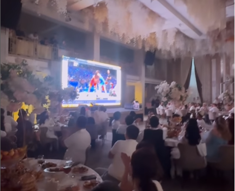 Шоумен Кубанычбек Баркалбасов соцтармактагы баракчасында видео жарыяланды. Видеодо тойду токтотуп коюп, балбандарды колдогон конокторду көрүүгө болот.