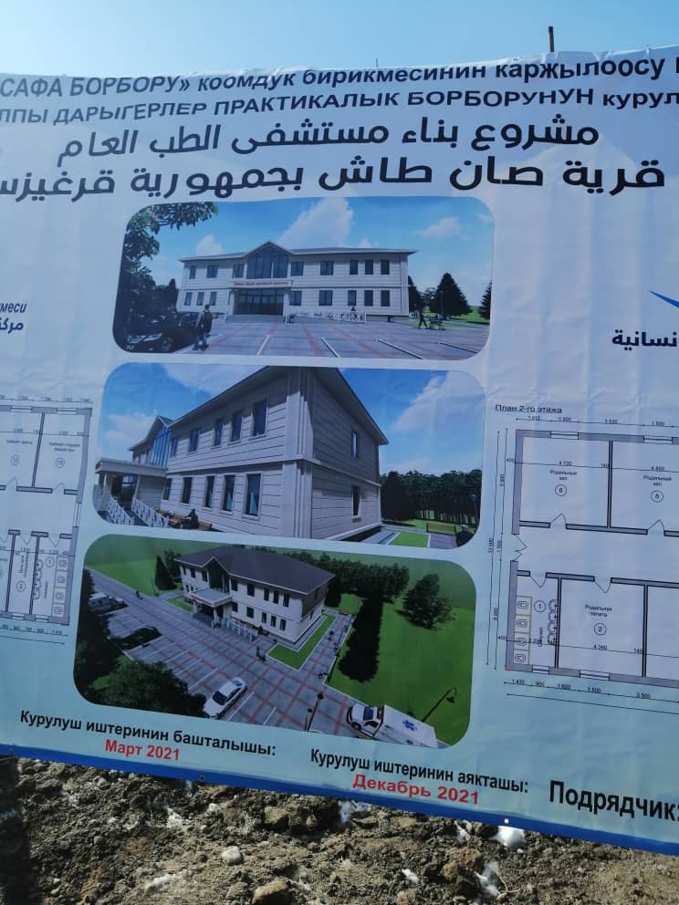 Маалыматка ылайык, ооруканалардын курулуш иштерине 34 миллион сом кетет жана бул сумма толугу менен «Ас-Сафа борбору» эл аралык коомдук бирикмеси тарабынан каржыланат.