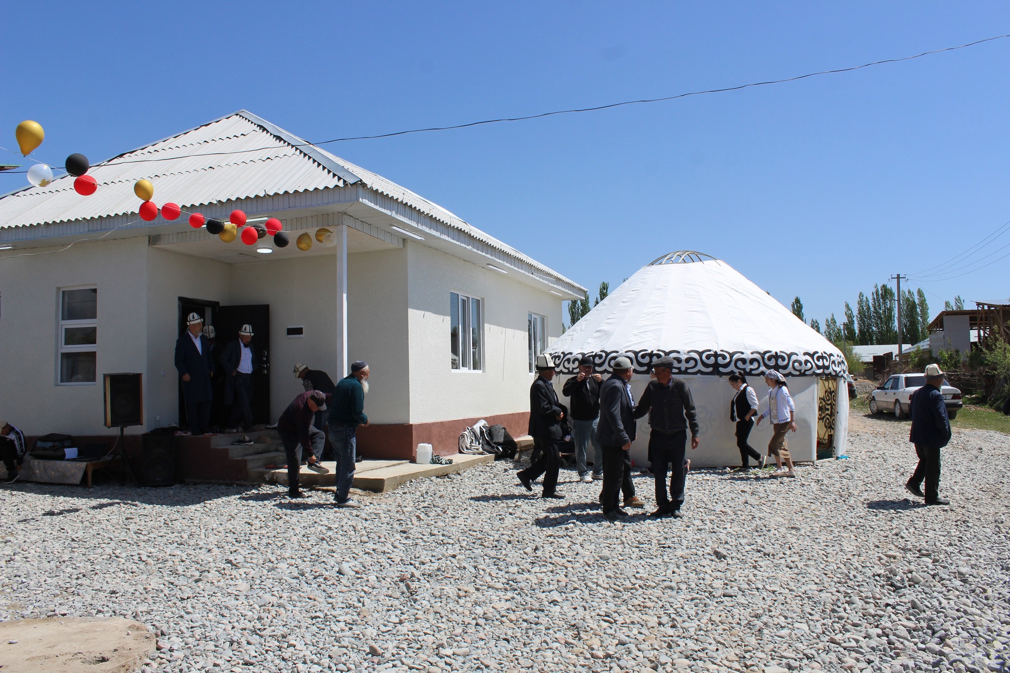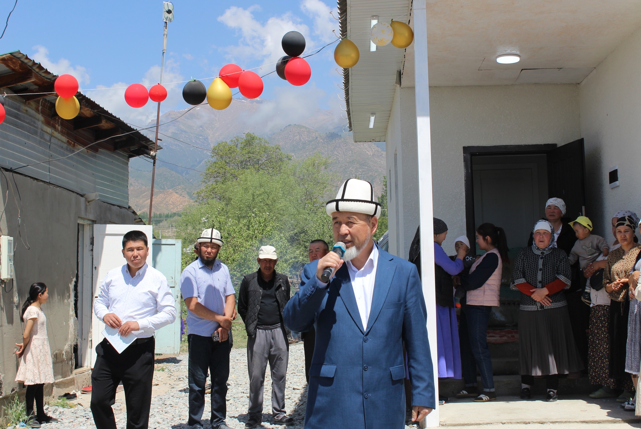 Үйдү тапшыруу аземине айылдын аксакалдары, энелери, тургундары жана коноктор катышып, жалпы элдин батасы менен иш-чара өткөрүлдү. Иш-чара Куран окуу менен башталып, Куранды Ысык-Көл облусунун казысы Самидин кары Атабаев окуду. Андан соң Ысык-Көл районунун баш имам-хатиби Максат ажы Сейталиев, Садыр-Аке айыл өкмөтүнүн башчысынын орун басары жана башка коноктор куттуктоо сөздөрүн айтып, баталарын беришти. Келгендердин айрымдары үй-бүлөгө ар түрдүү белектерин тапшырышты.
