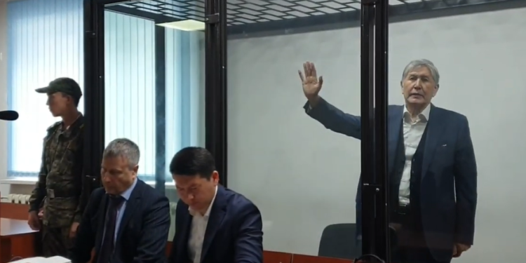 «Бул сот мага кысым көрсөтүп жатат. Соттук процессти менсиз өткөргүлө», — деди мурдагы өлкө башчысы. Андан кийин Атамбаевдин сот залына келген тарапташтары «позор» деп кыйкыра башташты. Экс-президент судья сүйлөп жаткан учурда айнек тосмону дагы тепкилеп, сот залынан чыгарылды.