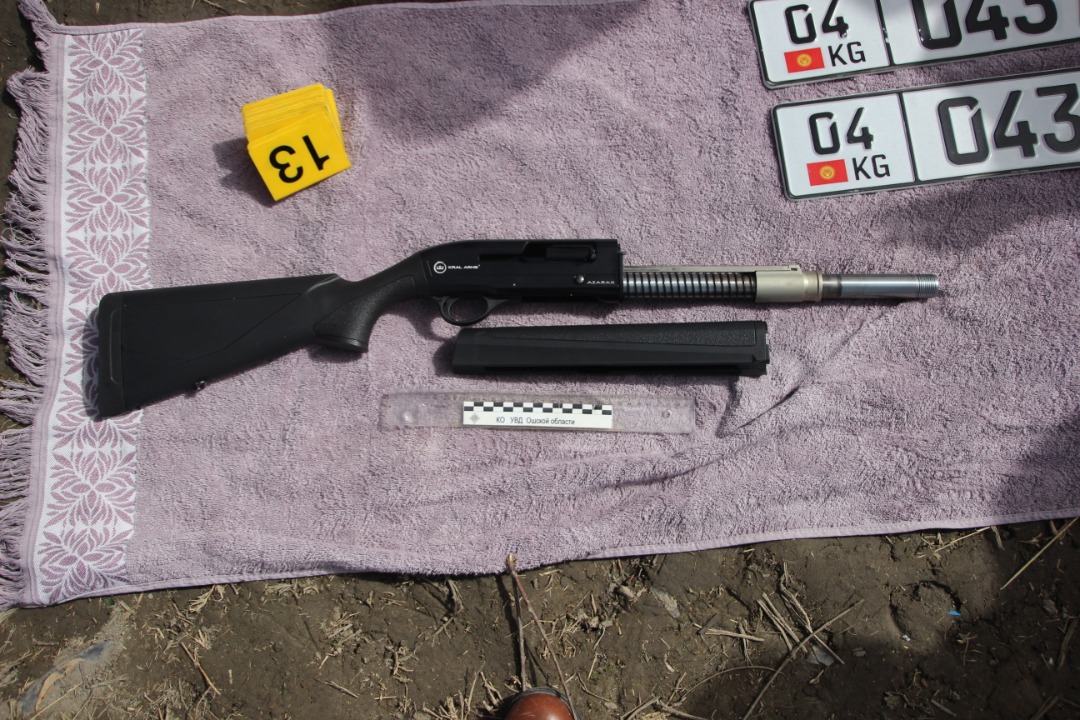 Өзгөндө кылмышка шектүүлөрдүн кылмыш учурунда колдонгон ок атуучу куралы жана автоунаасы табылды. Бул туурасында Ош облустук милициясынан билдиришти.