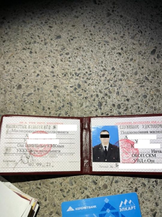 УКМК кызматкерлери тарабынан 2-апрелге караган түнү саат 03:15 чамасында 1 килограмм салмактагы өзгөчө жыты бар баңги затын белгиленген жерге бекитип таркатып жүргөн жеринен Ош шаардык Ички иштер башкармалыгынын Уюшкан кылмыштуулук менен күрөшүү бөлүмүнүн башчысы, милициянын подполковниги жана Ош шаардык Ички иштер башкармалыгынын Милициянын кайгуул кызматы бөлүмүнүн 4-взводунун кенже инспектору кармалды. Жыйынтыгында Ош шаарынын аймагында мыйзамсыз баңги затын ташыган каналдардын биринин ишине бөгөт коюлду.