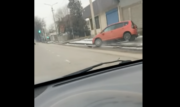 Видеодон көрүнгөндөй, аял унааны башкара албай калып, унаанын үстүндөгү киши менен арыкка кирип кеткен. Кырсыктын кесепетинен киши унаадан оодарылып, дубалга тийген. Бирок бул ордунан туруп, аялынын артынан чуркоого тоскоол болгон эмес. Окуяга күбө болгондордун кийлигишүүсүнө чейин ал аялды бир нече жолу чапканга жетишкен. Окуя кандай аяктаганы азырынча белгисиз.