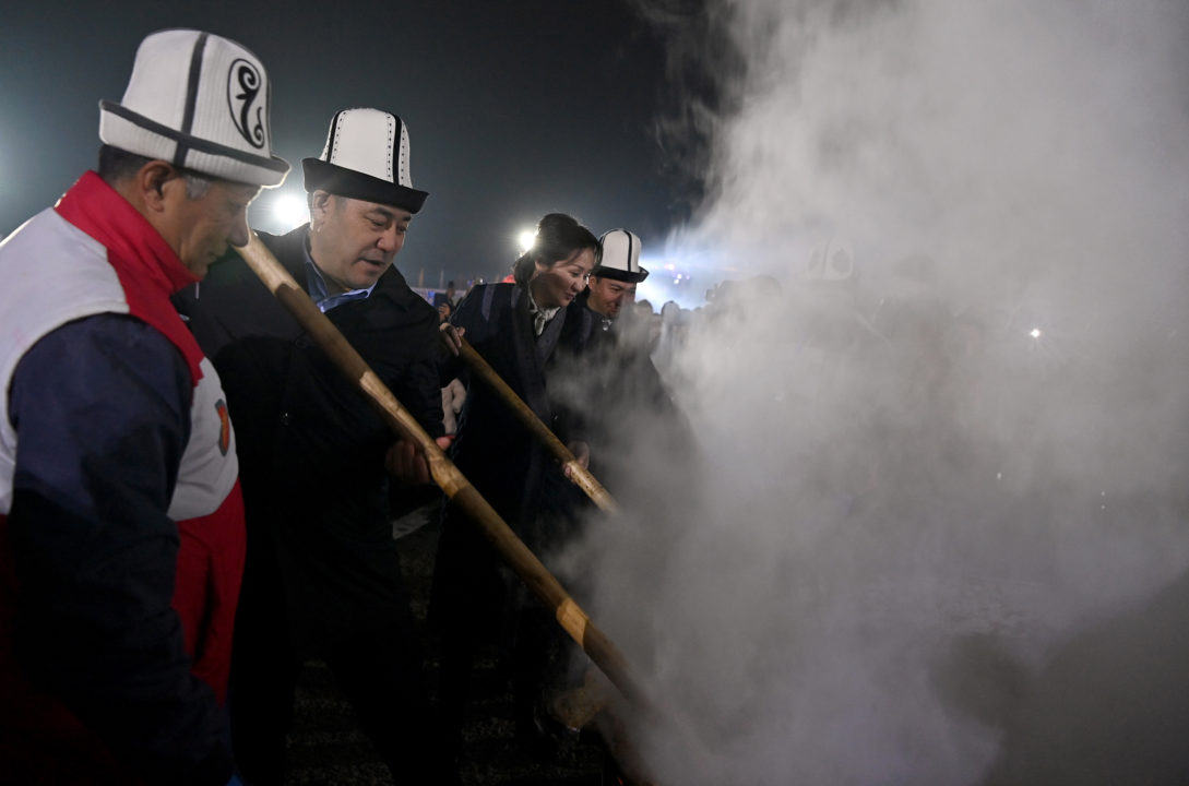 Президент Садыр Жапаров кечээ, 20-мартта Нооруз майрамына карата бир тонна салттуу сүмөлөк даярдалып жаткан Баткен шаарынын борбордук стадионуна пландан тышкары барды. Мамлекет башчысы салтка ылайык, каалоо-тилектерин айтуу менен сүмөлөк даярдалып жаткан казанды аралаштырды.
