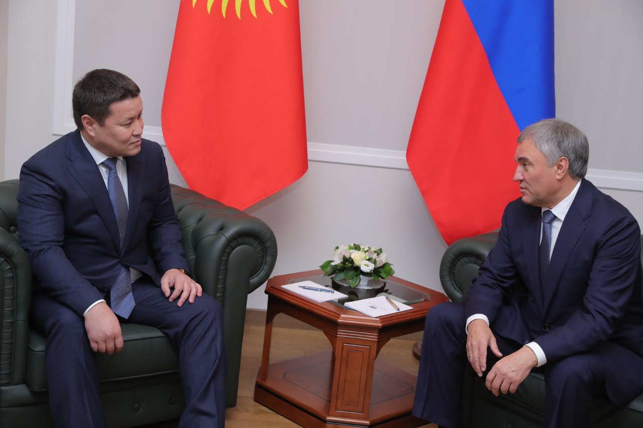 Кечээ, 7-декабрда президенттин милдетин аткаруучу, спикер Талант Мамытов Москва шаарындагы иш сапарынын алкагында Орусиянын Мамлекеттик Думасынын төрагасы Вячеслав Володин менен жолугушту. Тараптар парламенттер аралык кызматташтык жана эки өлкө ортосундагы саясий-экономикалык, маданий-гуманитардык алакаларга байланышкан маселелерди талкуулашты.