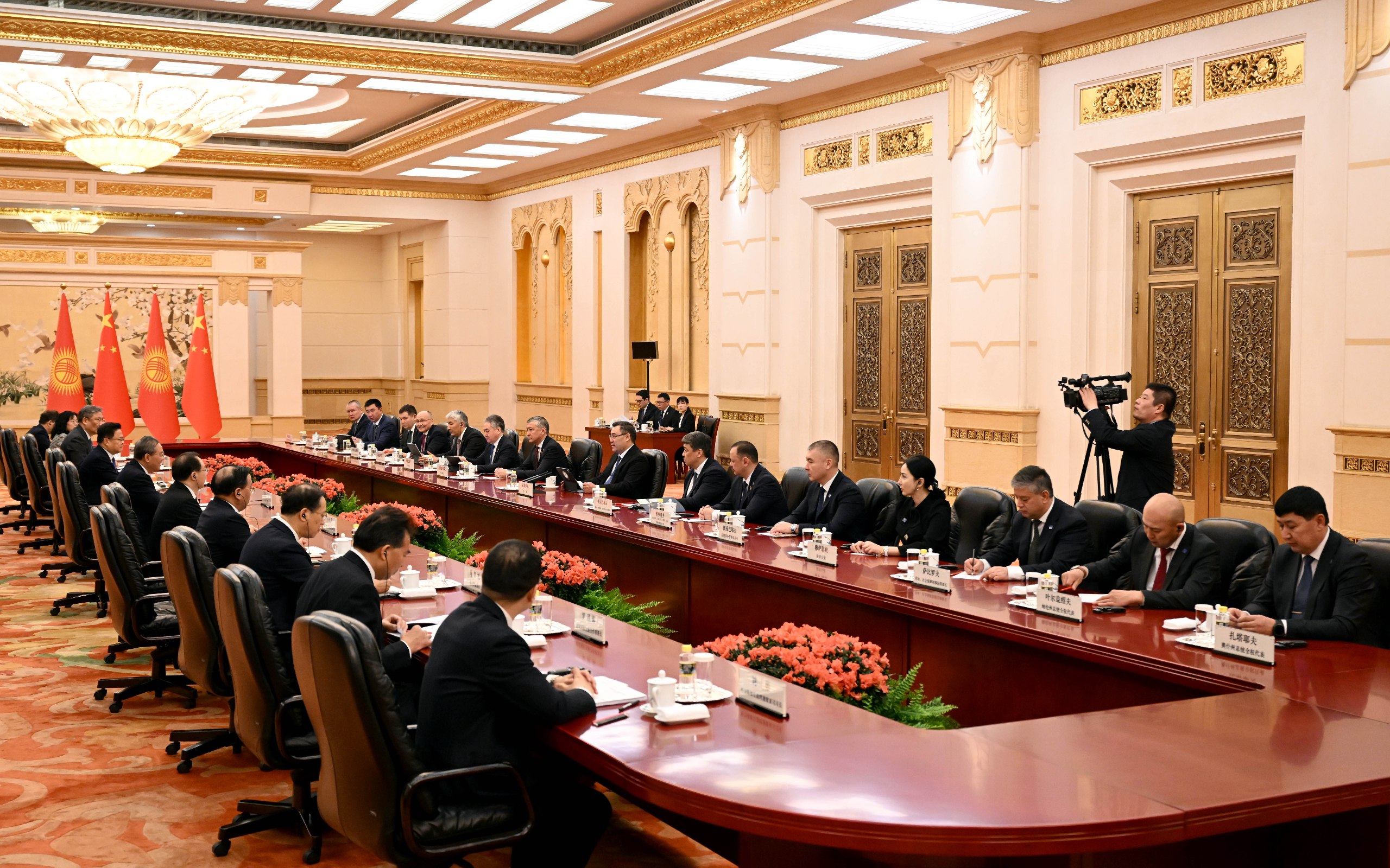 — Андан соң Элдик жыйындар үйүндө Садыр Жапаров менен Кытай эл республикасынын төрагасы Си Цзиньпиндин расмий жолугушуу аземи болуп, андан соң алар кеңейтилген форматта сүйлөшүүлөрдү өткөрүштү. Эки мамлекеттин башчылары кыргыз-кытай мамилелери, ар тараптуу жана тең укуктуу кызматташтыкты тереңдетүү, ошондой эле өз ара кызыкчылык туудурган эл аралык жана аймактык маселелер боюнча кеңири пикир алмашты. Андан кийин сүйлөшүүлөрдүн жыйынтыгы боюнча Баарын камтыган ар тараптуу стратегиялык өнөктөштүктү тереңдетүү жөнүндө биргелешкен билдирүү кабыл алынды. Ошондой эле мамлекеттик сапардын алкагында кыргыз-кытай эки тараптуу кызматташтыгын мындан ары өнүктүрүүгө багытталган бир катар документтерге кол коюлду.