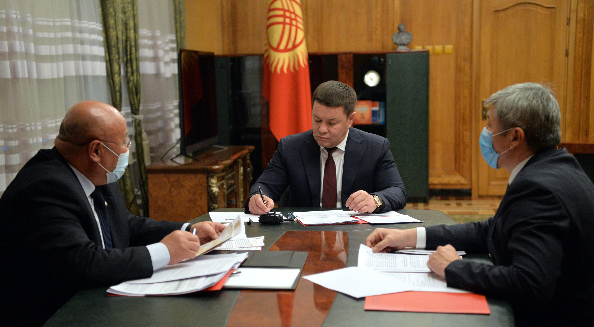 Кечээ, 28-ноябрда президенттин милдетин аткаруучу, Жогорку Кеңештин төрагасы Талант Мамытов Коопсуздук кеңешинин катчысы Рыскелди Мусаевди жана вице-премьер Максат Мамыткановду кабыл алды. Анда чек ара жаатында кызматташууну өнүктүрүү жана шайлоо алдында коомдук коопсуздукту камсыз кылуу чаралары талкууланды.
